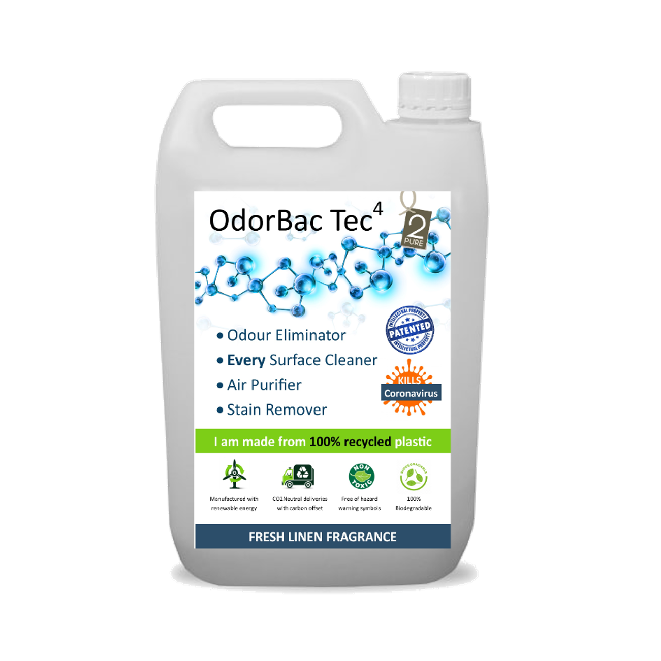 OdorBac Tec4 is designed from the ground up to be the safest, yet most powerful all-in-one odour eliminator and truly ALL purpose commercial cleaner in the world. With unparalleled performance delivered instantly as a result of 2Pure’s patented technology, OdorBac Tec4 often replaces over 95% of customers’ existing cleaning products reducing risk, training, and costs while increasing efficiency, speed and results.